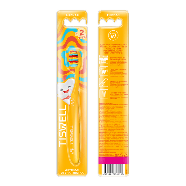Tiswell зубная щётка детская мягкая разноцветная для малышей от 2 лет 1 шт