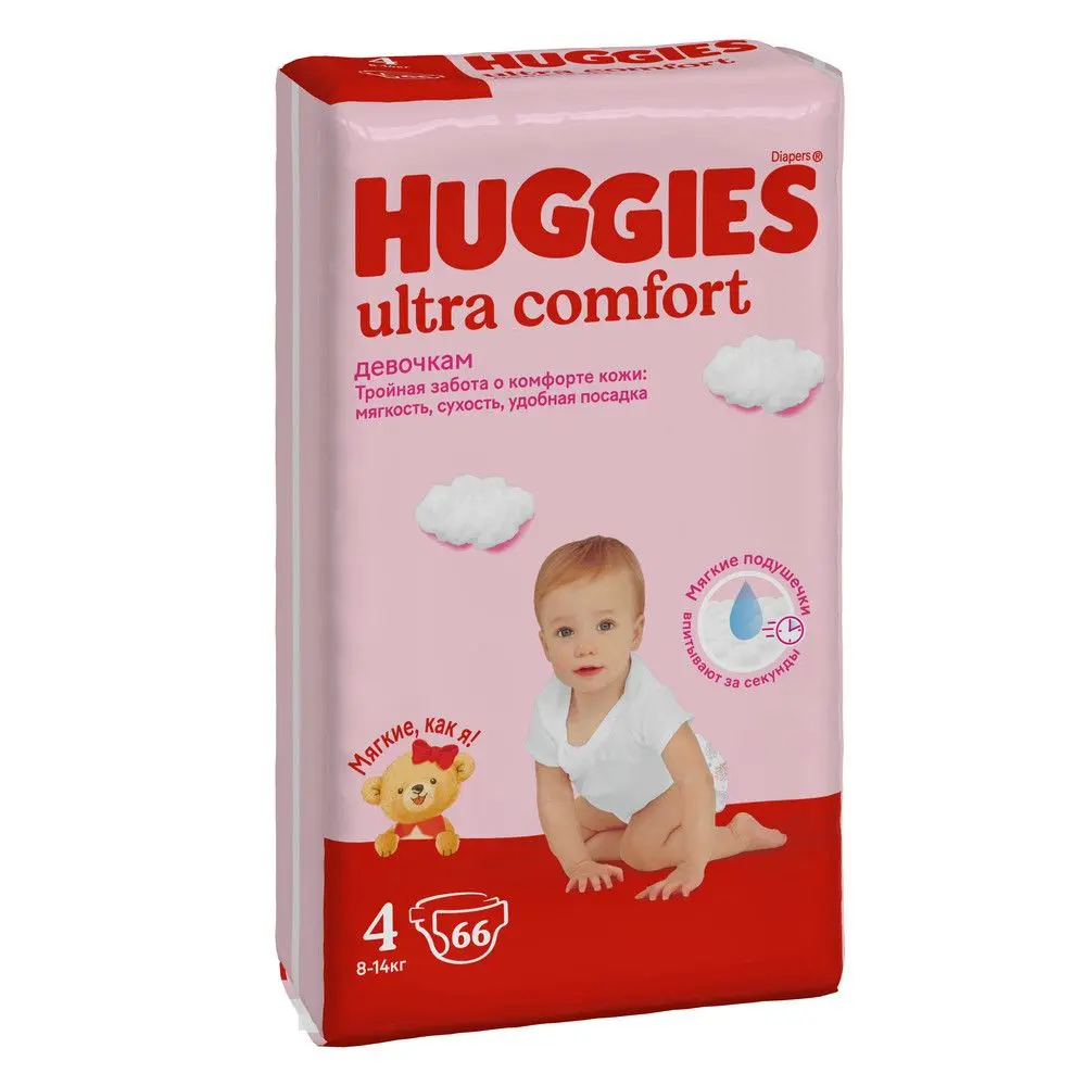 Huggies Ultra Comfort подгузники для девочек 8-14 кг 4 размер 66 шт
