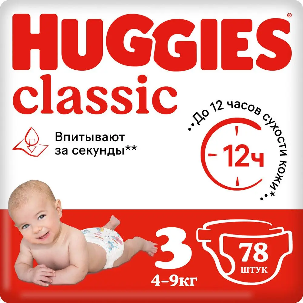 Huggies Classic подгузники 3 4-9 кг 78 шт