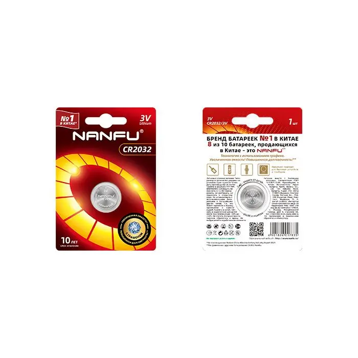Литиевые батарейки Nanfu 2032 типа таблетка предназначены для использования в электронных брелоках, небольших пультах управления, весах, портативных электронных устройствах, датчиках, медицинских устройствах (глюкометры, цифровые термометры), спортивных устройствах (мониторы сердечного ритма, аксессуары для велосипедов).