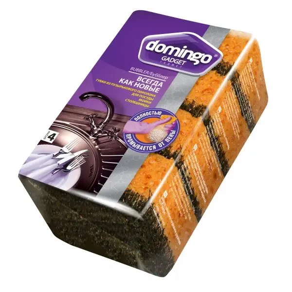 Специальный "бисквитный" поролон полностью промывается от пены, жира и остатков пищи, а кроме того эта губка всегда как новая: поролон не теряет форму, цвет и упругость. Подходит и для протирки кухонных поверхностей: не оставляет мыльных разводов и мокрых следов. Бескомпромиссное качество и безупречный стиль - философия Domingo! - Размер: 96х64х33 мм - Количество в индивидуальной упаковке: 4 шт.