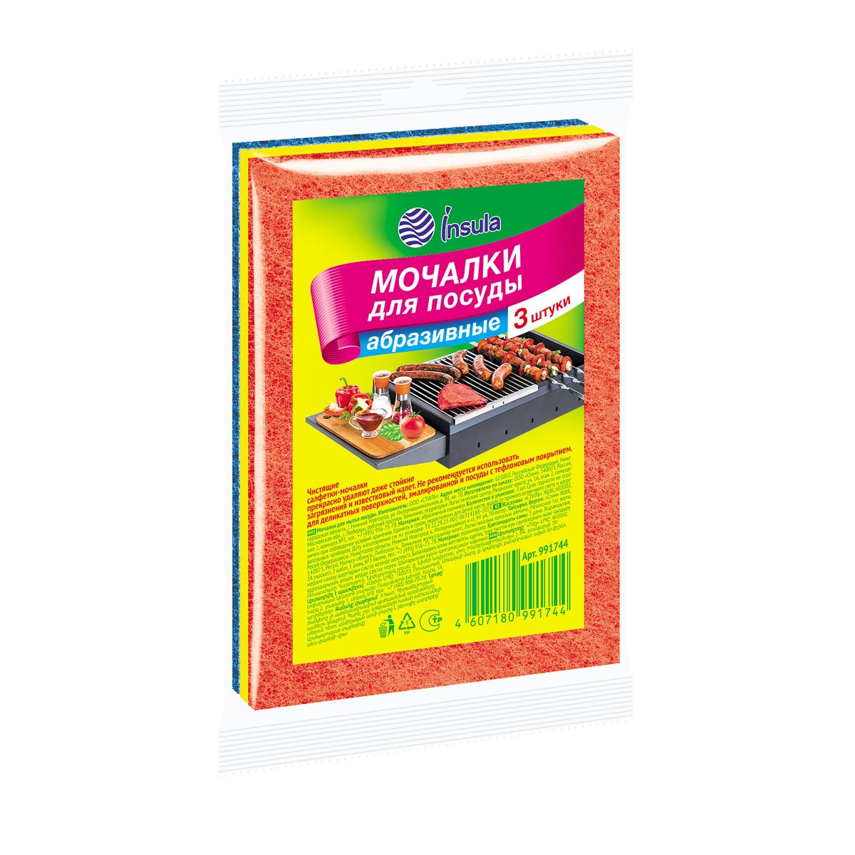 Insula мочалки для посуды абразивные 3 шт