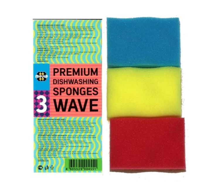 MEULE PREMIUM dishwashing sponges wawe губка из волнистого поролона 3 шт