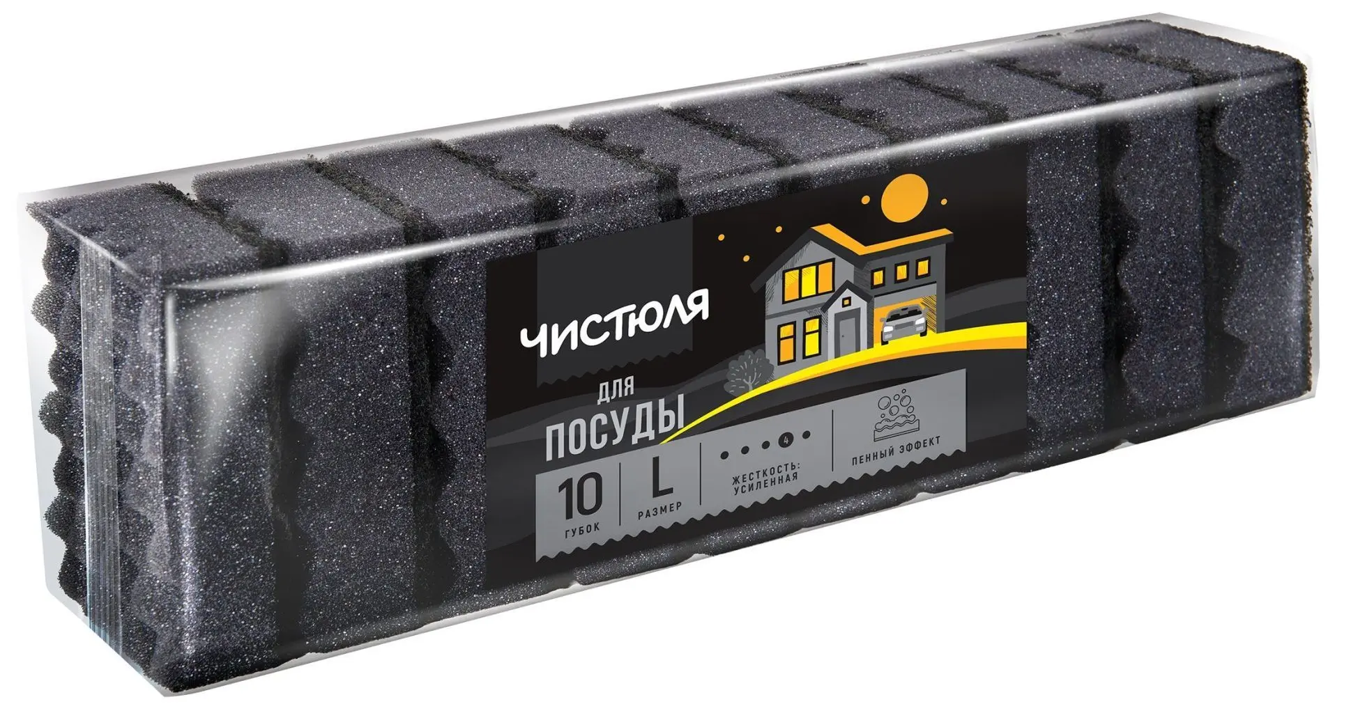 Чистюля 10 l пенный эффект губки для посуды чёрные размер l 10 шт
