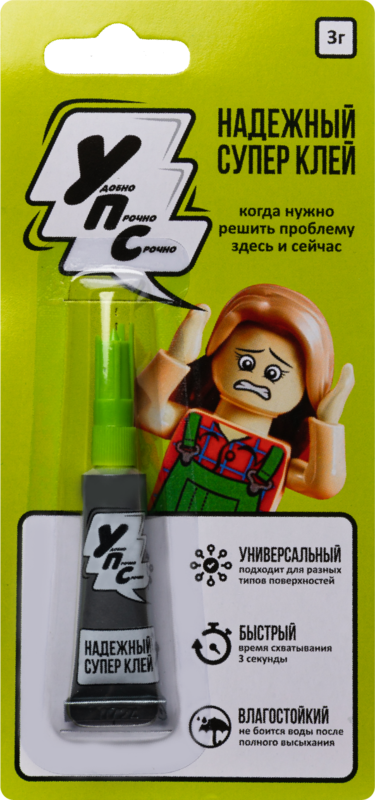 Супер клей УПС надёжно склеивает изделия из различных материалов в любом сочетании: пластмасса, кожа, металл, резина, дерево, керамика, пробка, фарфор.