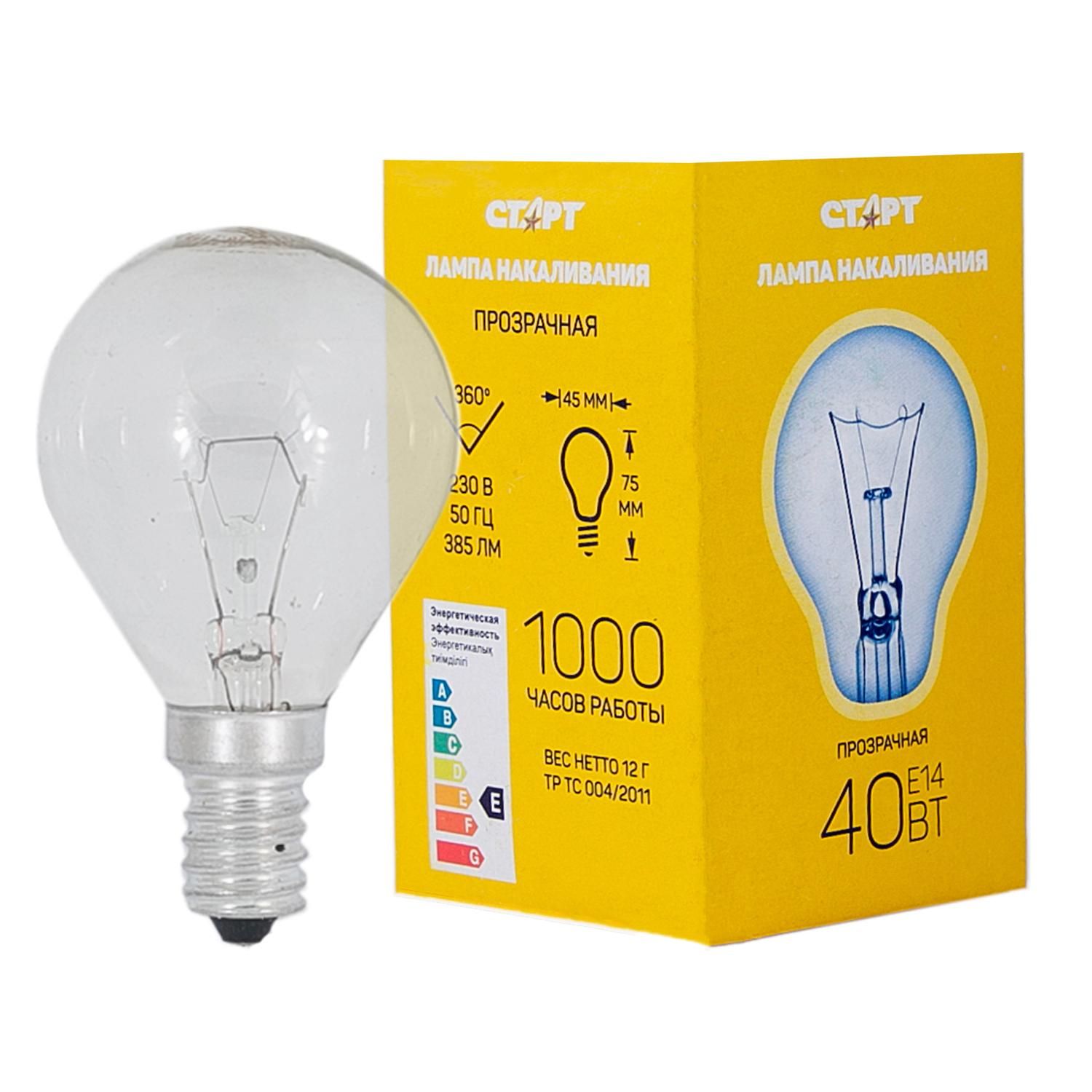 Лампа СТАРТ модели ДШ 40Вт Е14 принадлежит к классу прозрачных ламп накаливания – очень распространённых источников освещения. Можно использовать как в обычных люстрах, так и в некоторых типах светильников