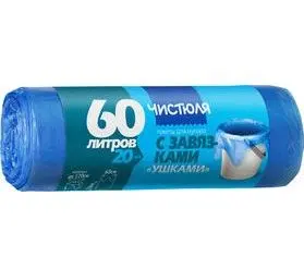 Чистюля пакеты для мусора с завязками ушками 60 л 20 шт