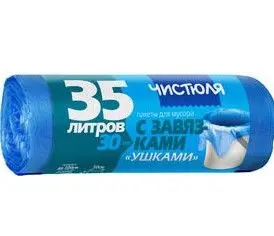 Чистюля пакеты для мусора с завязками ушками 35 л 30 шт