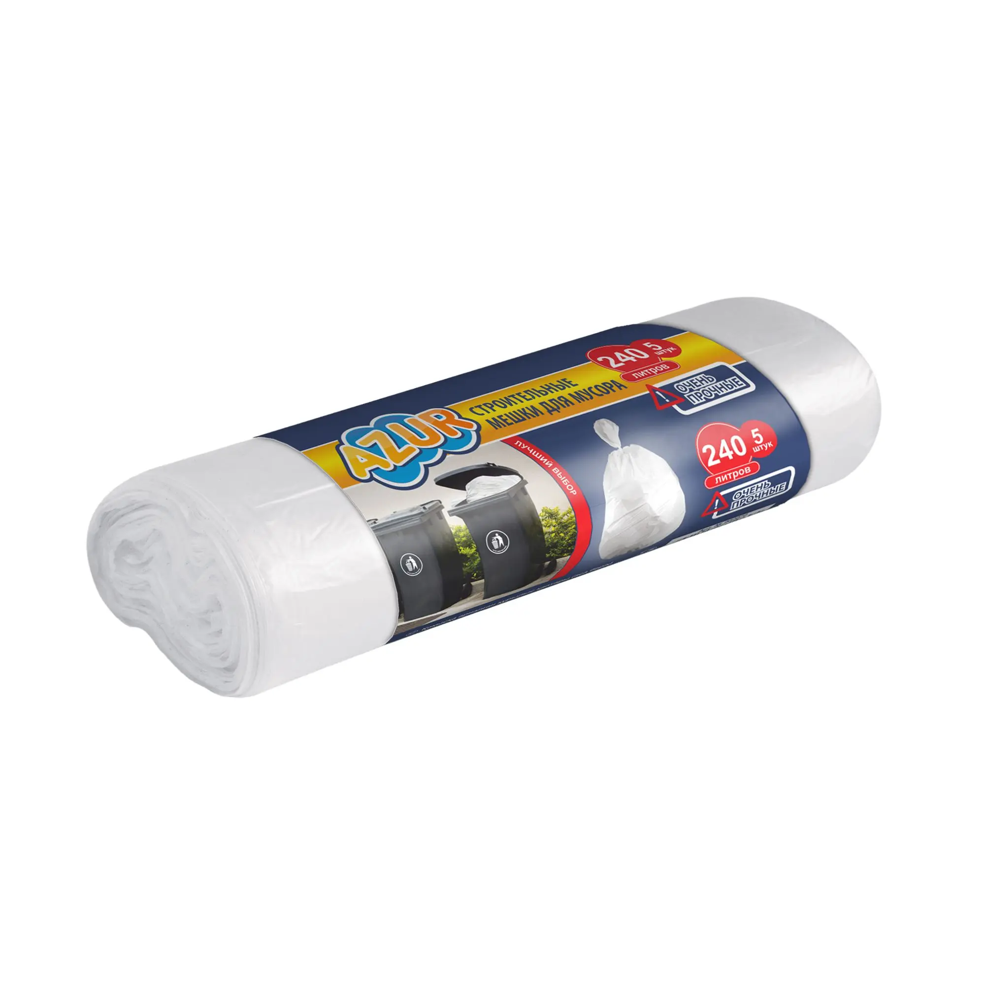 Azur мешки строительные для мусора 240 л 5 шт 22 мкм пвд без завязок белые
