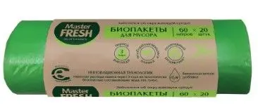 Master FRESH био пакеты для мусора 60л 20шт биоразлагаемые салатовые 9мкм