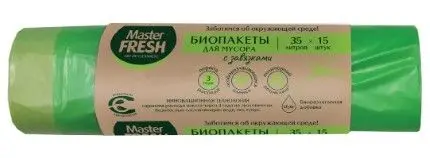 Master FRESH био пакеты для мусора с завязками 35л 15шт биоразлагаемые салатовые 14мкм