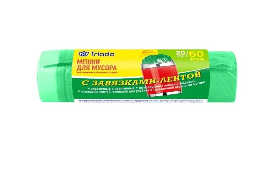 TRIADA мешки для мусора с завязками 60 литров 20 штук