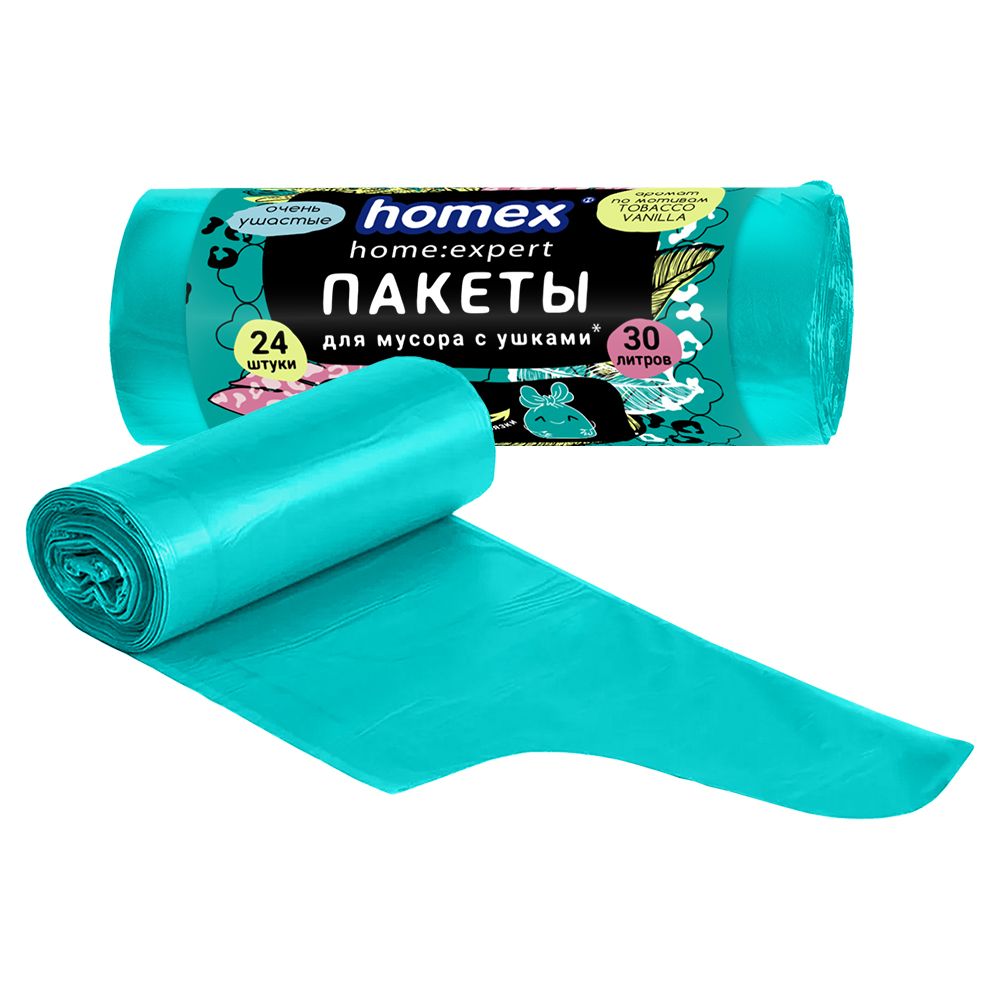 Homex пакеты для мусора 30 л 24 шт с ушками очень ушастые 10 мкр 47 х 54 см бирюзовые