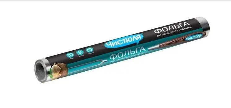 Чистюля Фольга алюминиевая, в рулоне, 10 м x 29 см. Блюда, запеченные в фольге, рекомендованы для диетического питания, так как при запекании в фольге не требуется добавления масла и жира, продукты запекаются в собственном соку. Не использовать в микроволновых печах и для хранения продуктов, содержащих кислоты и соли. Увеличенная плотность 11 микрон. Для запекания рекомендуется использовать в 2 слоя.