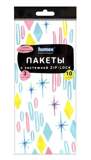 Homex пакеты зип лок для заморозки и хранения 3л 10шт очень практичные