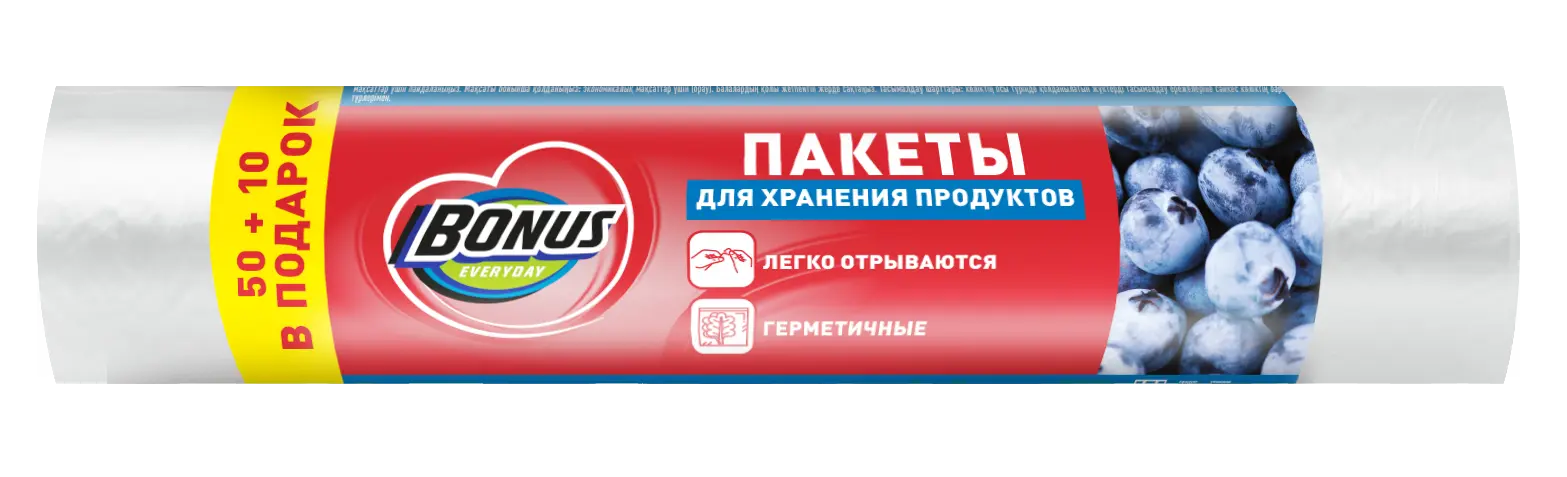 BONUS пакеты для хранения и заморозки продуктов 50+10 шт