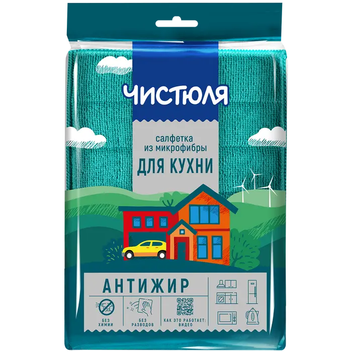 Чистюля салфетка для кухни из микрофибры антижир 17*23 см