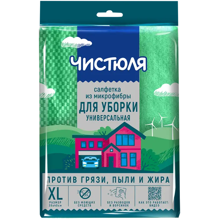 Чистюля салфетка универсальная из микрофибры размер xl 35*40 см