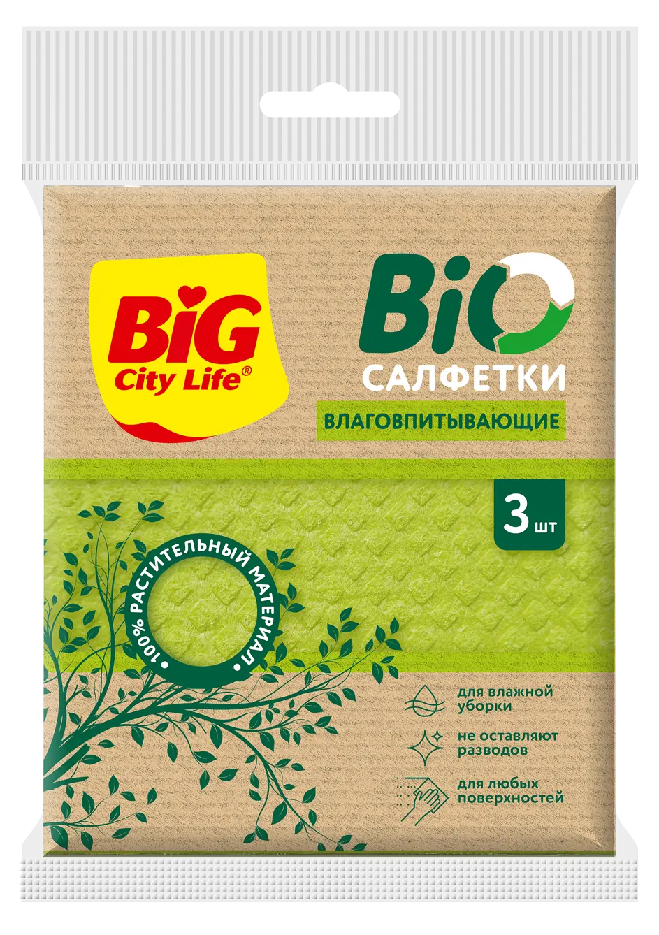 BIG City Салфетки влаговпитывающие губчатые BIO 3шт