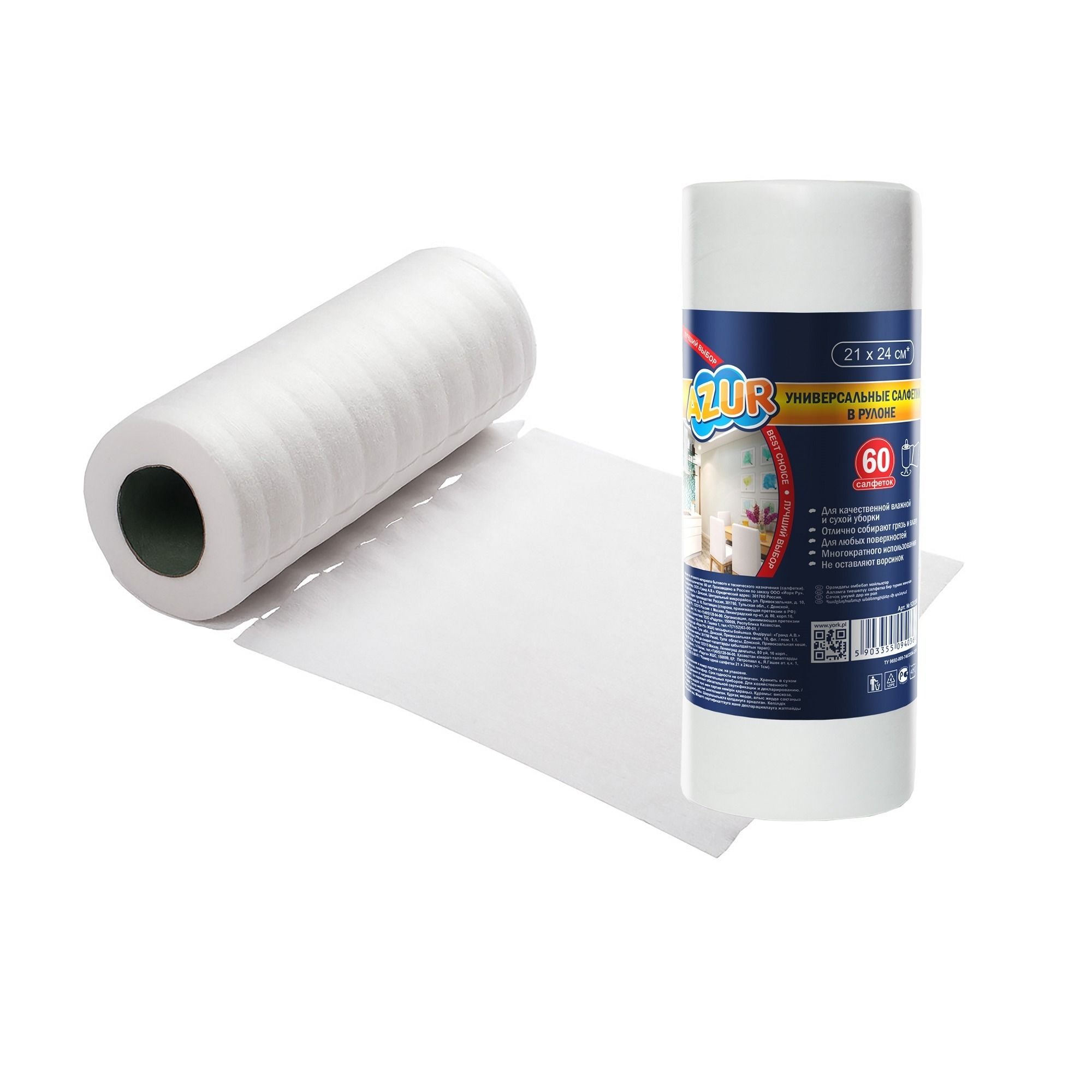 Azur cалфетки универсальные в рулоне 60 шт 21*24 см
