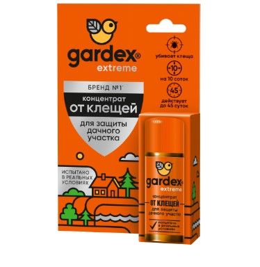 Концентрат для обработки дачного участка от клещей Gardex Extreme делает вашу территорию безопасной. Благодаря эффективному действующему веществу в составе (циперметрин 25%), он убивает уже находящихся на участке клещей и изащищает от проникновения новых.