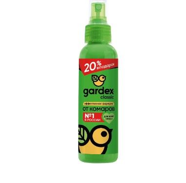 Летом так хочется больше времени проводить на свежем воздухе, но назойливые насекомые часто портят наш отдых. Каждый из нас неоднократно был покусан комарами, как результат – зуд и покраснения. Спрей от комаров Gardex Classic обеспечит надежную защиту от комаров, мокрецов и москитов в течение 3х часов. Спрей не содержит спирта, не стягивает и не сушит кожу. С ним Ваши прогулки станут еще приятней.