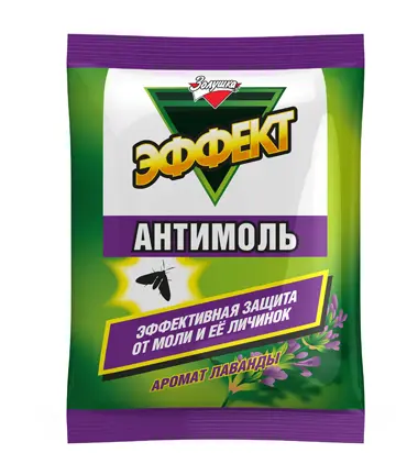 Эффект–Антимоль надежно защищает Вашу одежду, изделия из меха и шерсти от моли и ее личинок, придавая вещам приятный аромат.