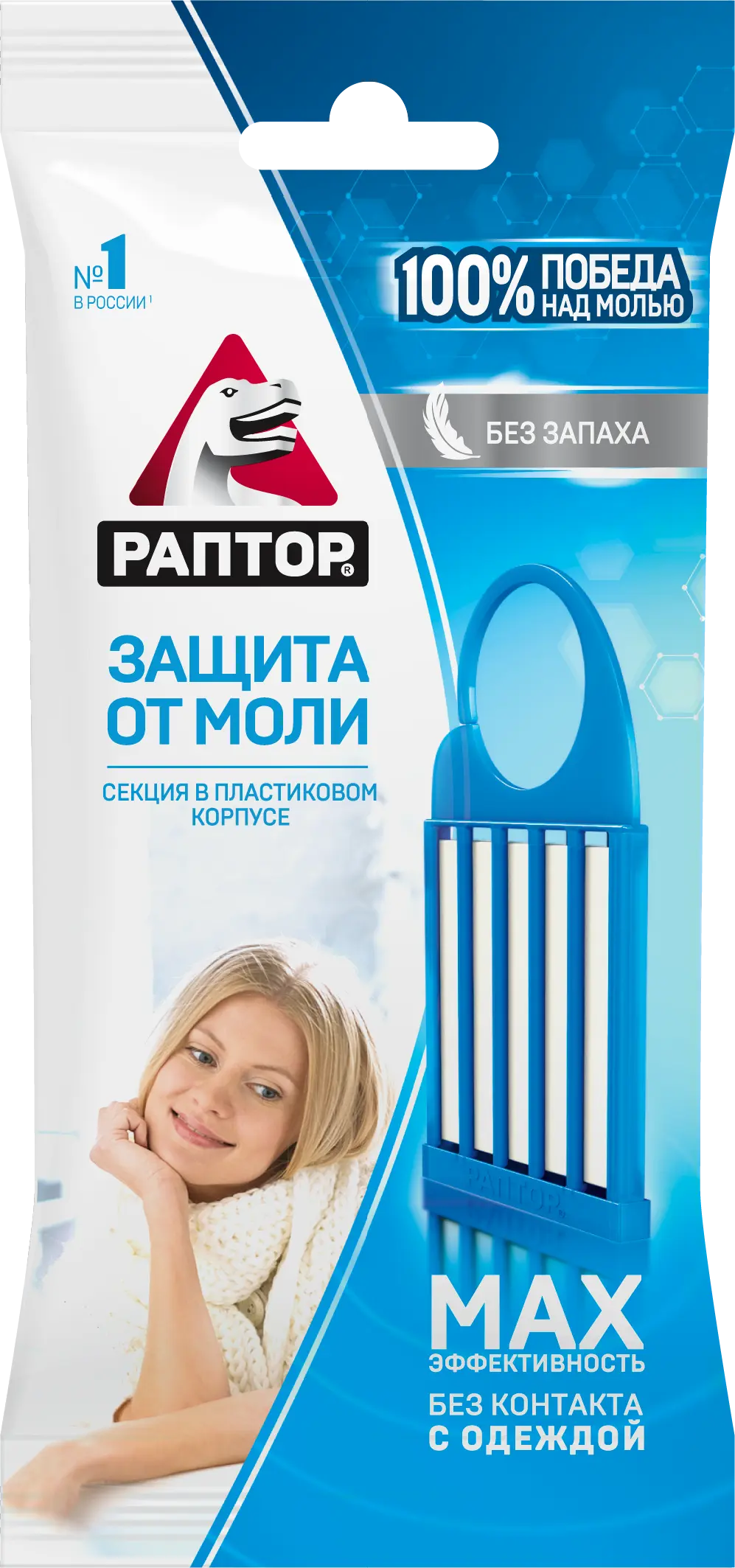 Секция Раптор® надежно защитит Ваши любимые шерстяные и меховые вещи от моли. Активное вещество эффективно уничтожит бабочек моли и ее личинок. Проста и удобна в использовании.