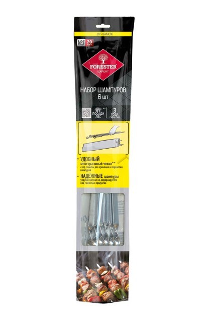 Forester набор шампуров средних никелированная сталь в пакете 6шт