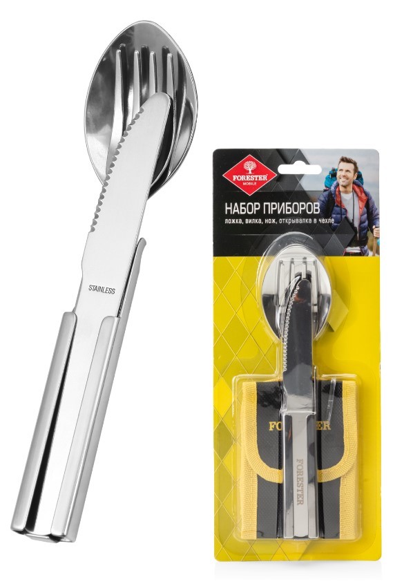 FORESTER MOBILE набор ложка вилка нож открывалка 16-18 см в чехле из нерж стали