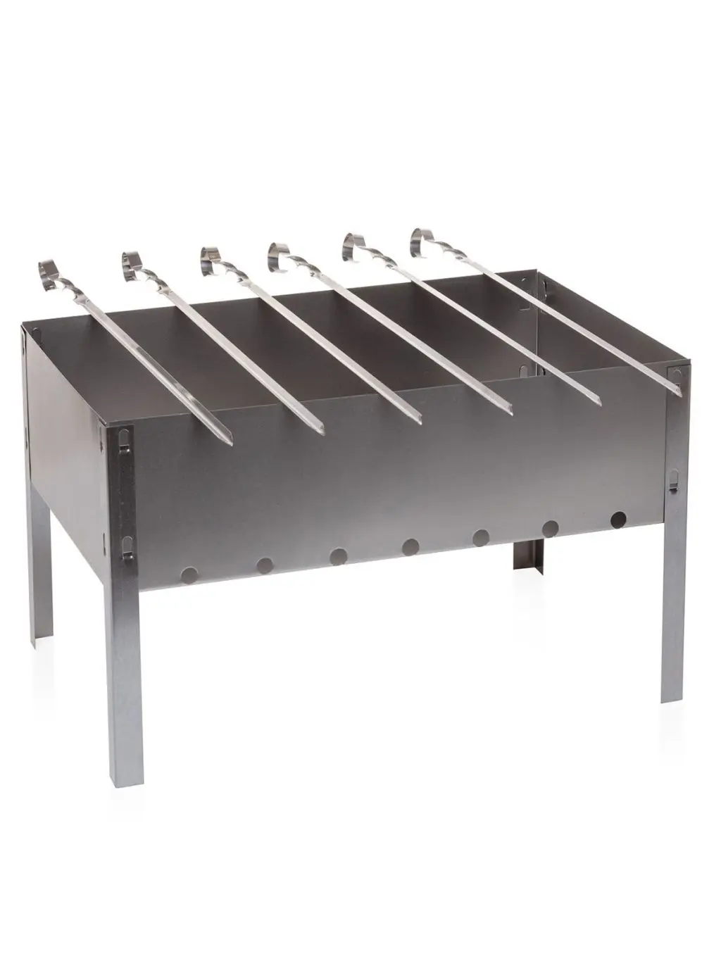 • Размер в рабочем состоянии 40х24х24 см, что позволяет разместить на нем 6 классических шампуров, которые входят в комплект.