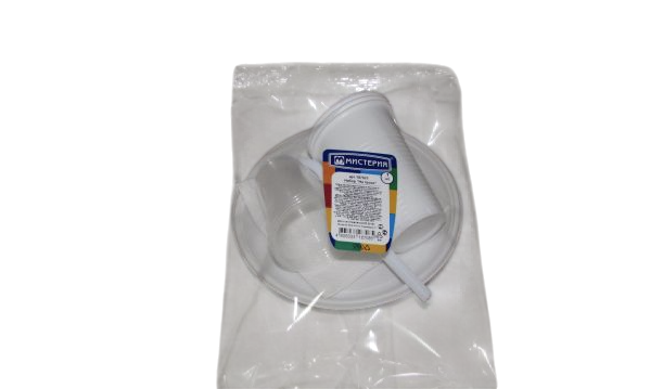 Набор одноразовой посуды на троих 3 стак 100 мл ПП+3 стак 200 мл ПП+3 тар d165 мм ПС+3 вил.+3 салф