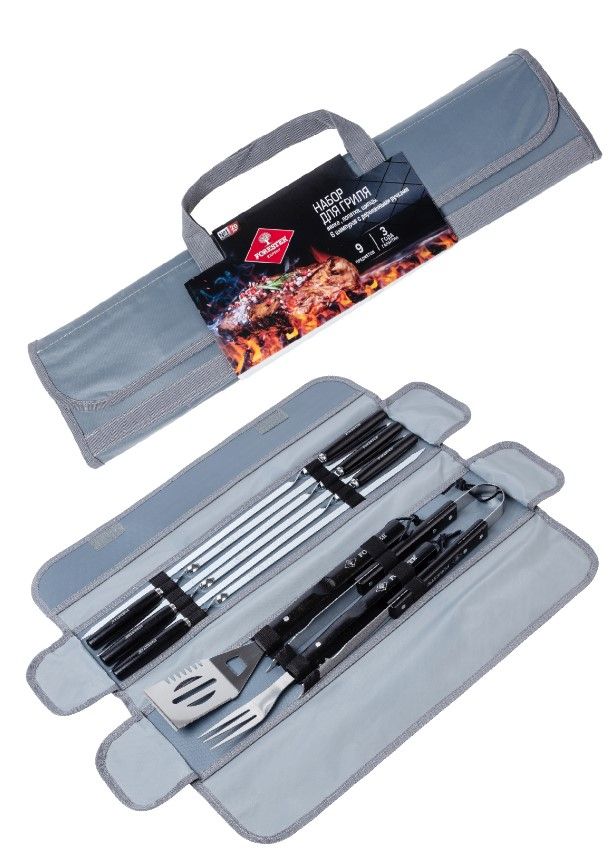 Forester набор для гриля вилка лопатка щипцы 6 шампуров 55 см в чехле
