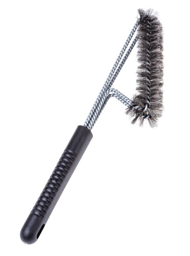 Содержать аксессуары и оборудования для гриля и барбекю в чистоте - задача не только эстетического характера, но и прямая функциональная необходимость. Своевременная очистка от загрязнений поможет существенно продлить срок эксплуатации изделий. Надежным помощником для очистки гриль-принадлежностей станет удобная двухрядная щетка. Стальной ворс справится даже с самыми сильными загрязнениями.