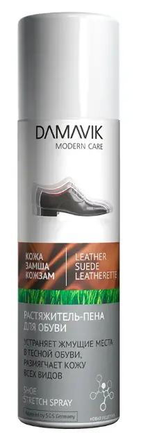 Растяжитель-пена для обуви «DAMAVIK» предназначен для быстрого устранения жмущих мест в тесной обуви и размягчения кожи. Эффективно воздействует на волокна кожи, растягивая их и фиксируя в нужном положении, не изменяя при этом структуры. Подходит для обуви всех видов кожи (гладкой, замши, велюра, нубука), кожзама.