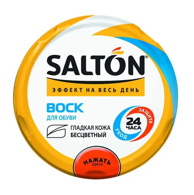 Воск для обуви торговой марки Salton является отличным средством защиты обуви от неблагоприятных воздействий: снега, грязи, воды. Воск эффективно смягчает кожу, тем самым предотвращая появление трещин. Благодаря удобной крышке, открывающейся одним нажатием, средство выгодно отличается легкостью использования. Продукт выпускается в черном и бесцветном вариантах.
