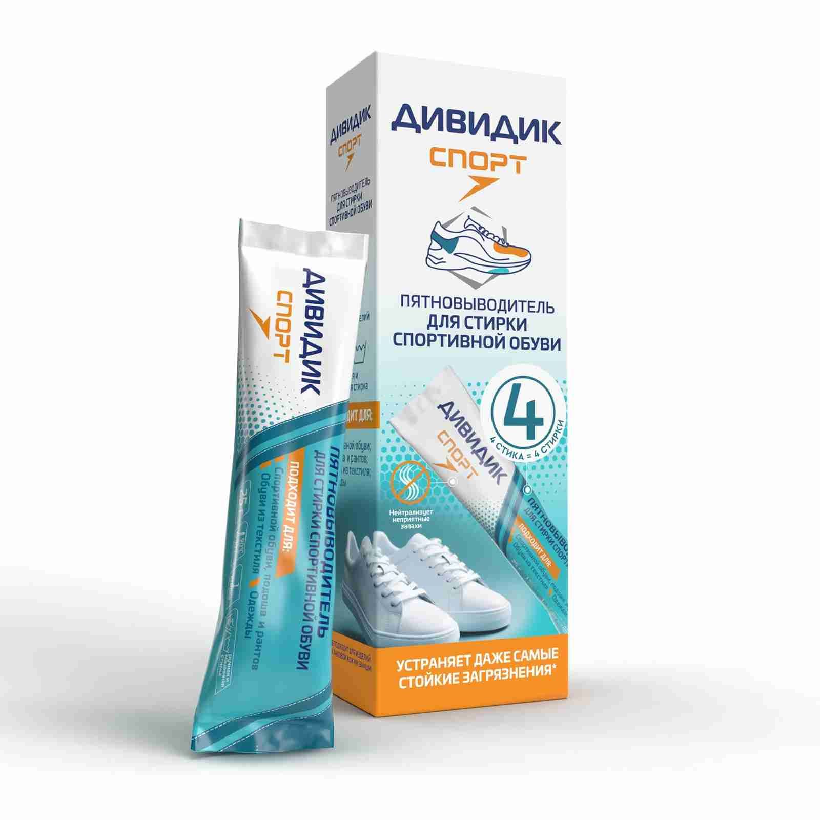 Дивидик спорт пятновыводитель для стирки спортивной обуви и одежды 4 стика 4 стирки