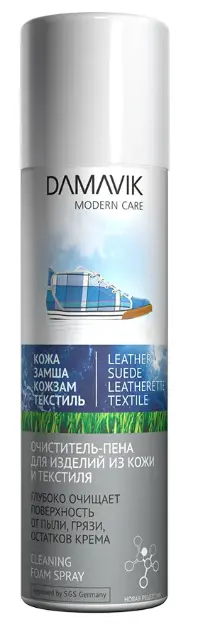 Универсальный очиститель-пена Damavik для изделий из любых типов кожи и текстиля обеспечивает глубокую очистку поверхности от пыли, грязи, остатков крема, активизирует способность кожи и замши "дышать". Удобен для чистки обуви, мебели, сумок и других кожаных и текстильных изделий. Для обуви рекомендуется применять перед нанесением крема или красителя или других средств по уходу.