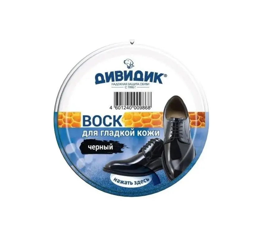 воск классик для обуви в банке Дивидик черный объемом 40 мл. Воск для обуви Дивидик очищает, обновляет цвет и надежно защищает от промокания изделия из гладкой кожи. Воск на основе пчелиного воска и вазелина интенсивно питает и смягчает кожу. Обеспечивает максимальную водостойкость, надежно защищает обувь от промокания. Предохраняет от растрескивания обуви в мороз.