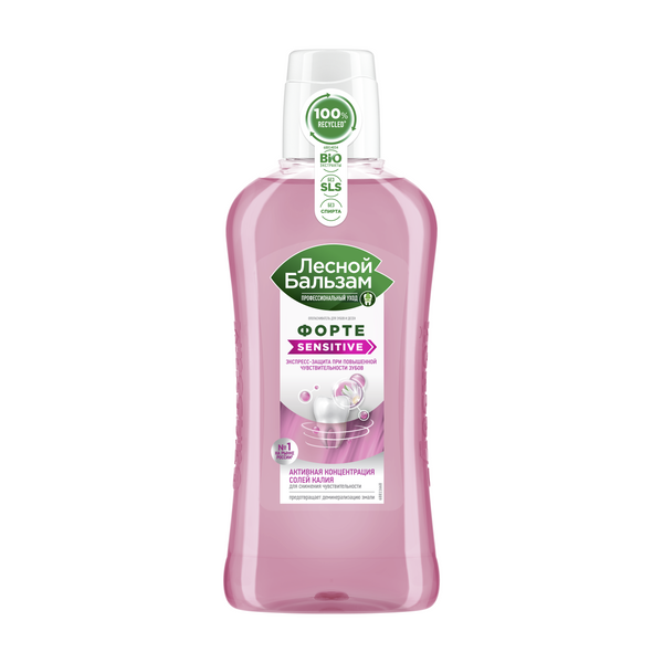Ополаскиватель Лесной бальзам с формулой АКТИВ-ГЕЛЬ для чувствительных зубов отличается от обычных ополаскивателей длительностью воздействия в полости рта*. Гелевая формула образует едва ощутимую защитную пленку на зубах и деснах сразу после использования, которая: - препятствует прикреплению бактерий к эмали зубов, что значимо снижает скорость образования налета в течение дня - защищает эмаль зубов от окрашивания пищевыми красителями (кофе, вино, чай) - позволяет дольше удерживать активные вещества ополаскивателя в полости рта, усиливая эффект снижения чувствительности зубов и восстановление эмали Ополаскиватель обладает интенсивным вкусом сладкой мяты. Содержит соли калия для снижения чувствительности зубов, натуральные антибактериальные компоненты (экстракт ромашка, календулы, крапивы, тысячелистника, зверобоя, чистотела, масло шиповника) для укрепления десен и минеральный комплекс для восстановления целостности эмали. Результаты клинических исследований формулы АКТИВ-ГЕЛЬ*: 1) Мощная непрерывная защита полости рта от бактерий на 12 часов 2) Двукратное улучшение состояния десен и зубов чрез 2 недели использования 3) Высокая эффективность против воспаления и кровоточивости десен на начальных стадиях гингивита 4) Снижение чувствительности зубов после первого использования