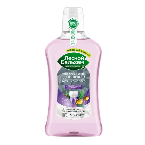 Чтобы не допустить появления зубного камня и развития кариеса, рекомендуется использовать специальную жидкость для полоскания рта. Освежающий ополаскиватель для рта Лесной Бальзам – это эффективное средство для очищения зубов, укрепления десен, удаления налета и устранения неприятного запаха. Антибактериальный** ополаскиватель для полости рта обеспечивает ощущение чистоты и свежести. Ополаскиватель для рта Лесной Бальзам помогает предотвратить появление налета на зубах. ''Полоскатель'' для рта имеет обогащенный активными ингредиентами состав. Средство для ополаскивания рта содержит минералы морской соли, сок алоэ, экстракт мяты и другие компоненты. Масло чайного дерева помогает бороться с воспалительными процессами. Эвкалипт и экстракт мяты освежают дыхание. Алоэ поддерживает здоровье десен, а экстракт пихты оказывает антибактериальный эффект. Ополаскиватель Лесной Бальзам против налета содержит магний и кальций, которые обеспечивают реминерализацию зубов. Комплекс активных компонентов восстанавливает зубную эмаль. Ополаскиватель Лесной Бальзам с эффектом ''антиналет'' обеспечивает ротовой полости комплексный уход. Средство для гигиены полости рта оказывает антибактериальное действие**, удаляет налет даже в межзубных промежутках. Рекомендуется полоскать рот в течение 30 секунд не реже двух раз в день.