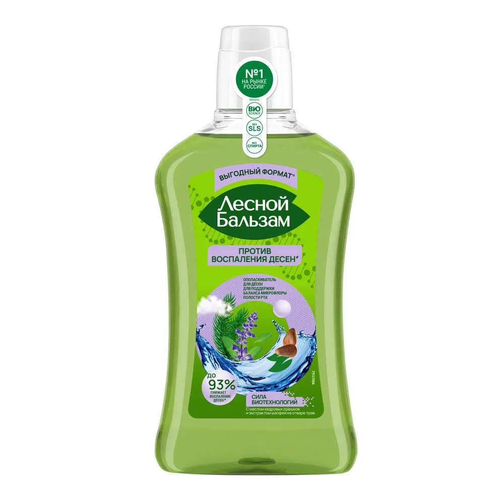 Лесной бальзам ополаскиватель для дёсен с маслом кедровых орешков и экстрактом шалфея на отваре трав 800 мл