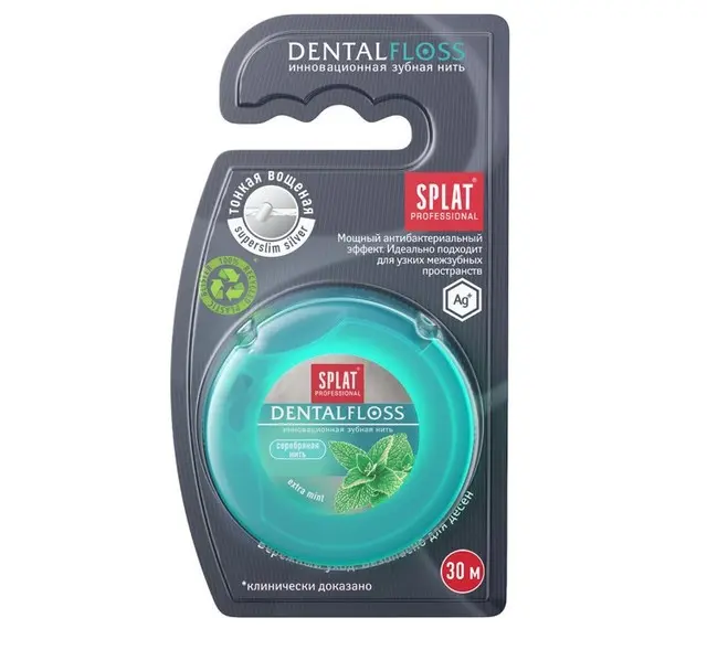 Splat нить зубная супертонкая Мятная с волокнами серебра Professional DentalFloss