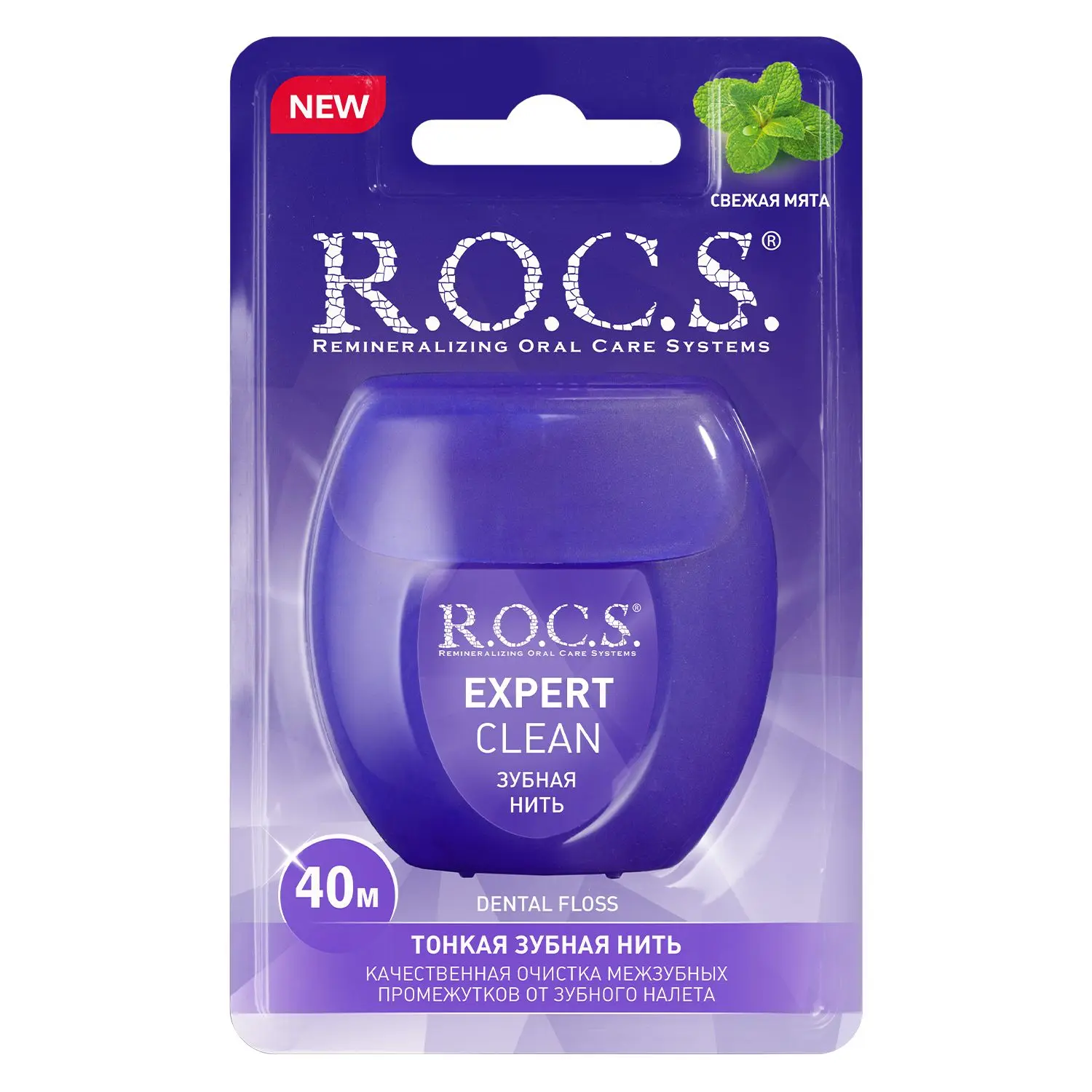 Тонкая зубная нить R.O.C.S.® EXPERT CLEAN, 40 м. с освежающим мятным вкусом обеспечивает качественную очистку межзубных промежутков от зубного налета и дарит свежее дыхание. Регулярное использование помогает предотвратить воспаление десен. Обеспечивает эффективный контроль зубного налёта в зоне повышенного риска кариеса и периодонтита. ПОДХОДИТ КАК ДЛЯ УЗКИХ, ТАК И ДЛЯ ШИРОКИХ МЕЖЗУБНЫХ ПРОМЕЖУТКОВ. ПРЕИМУЩЕСТВА: - Тонкая вощеная нить проникает в узкие межзубные промежутки - Эффективно очищает зубной налет; - Предотввращает развитие кариеса и воспаление десен; - Не содержит фтор - Не повреждает десны - Придает свежесть Вашему дыханию - Хватает надолго! Длина 40 м. Обладает мягким мятным вкусом. Эта зубная нить идеально подходит для людей с узким межзубным пространством и повышенной чувствительностью зубов и десен.