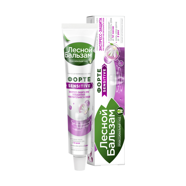 Профилактическая зубная паста Лесной бальзам SENSITIVE Professional – сочетание современных технологий очищения эмали и 100% натуральных компонентов. Абразивная система зубной пасты SENSITIVE идеально подходит для чувствительных зубов и ослабленной эмали. Благодаря особой мелкодисперсной форме абразивных частиц очищение налета происходит максимально бережно, но при этом эффективно по всей поверхности зубов. Абразивность пасты сопоставима с абразивностью детских зубных паст, при этом качество очищения налета сохраняется на высоком уровне. Зубная паста Лесной бальзам SENSITIVE не только снижает чувствительность зубов, но и обеспечивает усиленное восстановление эмали с первых секунд использования. - Соли калия запечатывают дентинные канальца и блокируют повышенную чувствительность зубов в течение дня. - Формула усилена гидроксиапатитом (источник кальция), который заполняет поврежденные участки эмали, восстанавливая естественный блеск зубов. - Содержит мощный натуральный антибактериальный комплекс на основе коры магнолии, экстракта имбиря и бисаболола, который эффективно борется с налетом и бактериями в полости рта, оказывает противовоспалительный эффект - Мягкая абразивная система идеально подходит для очищения налета при повышенной чувствительности зубов и не травмирует эмаль