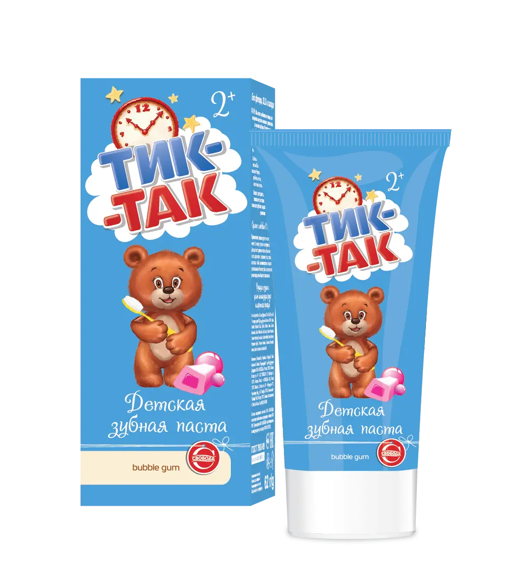 Детская зубная паста "Тик-Так"bubble gum без аллергенов, лаурилсульфата натрия, сахара.