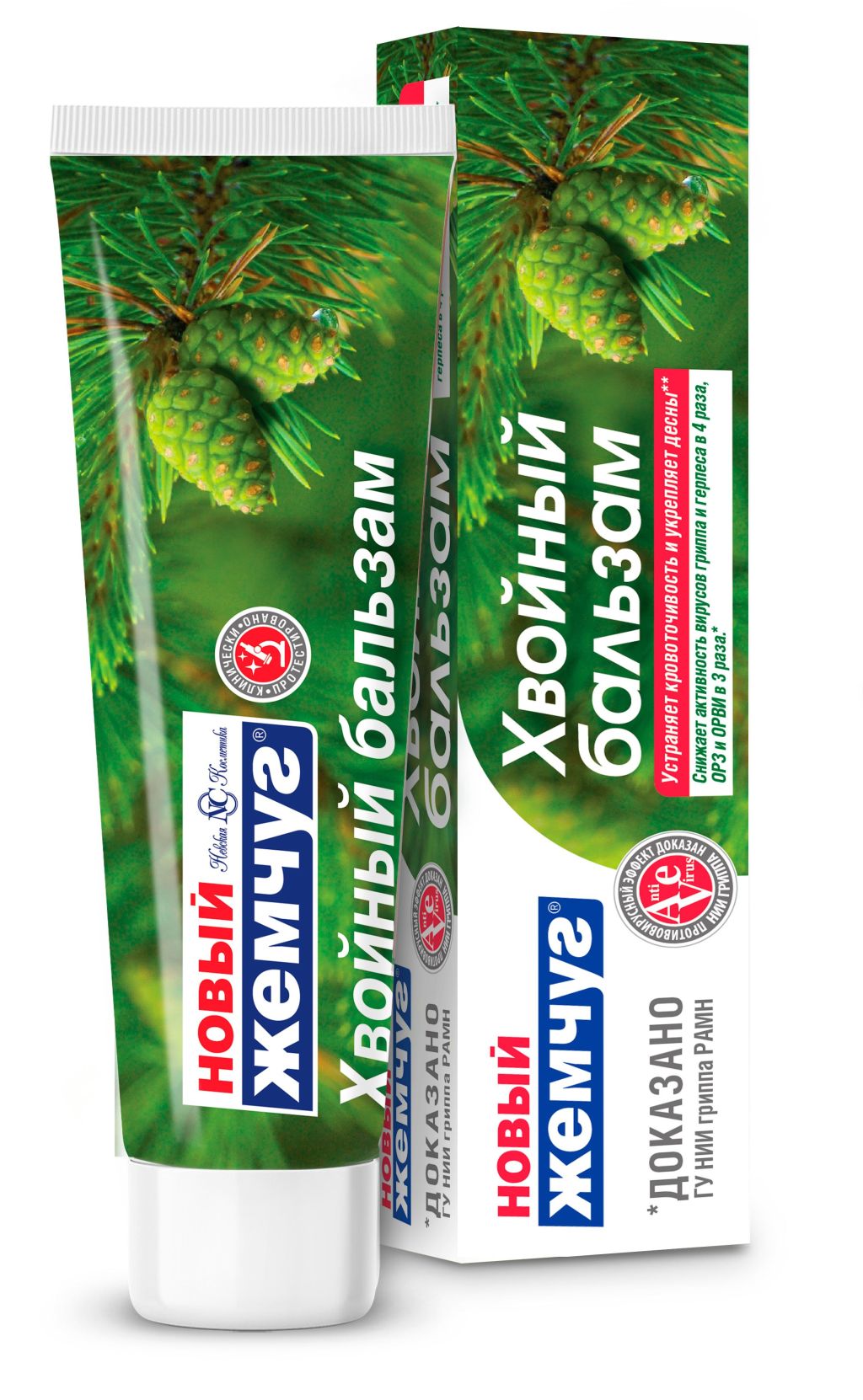 Зубная паста предназначена для ухода за полостью рта людей любого возраста. Паста бережно очищает, укрепляет десны, снижая кровоточивость. Уменьшает риск повторных заболеваний десен. Является необходимым средством для борьбы с простудными заболеваниями в период повышенной вирусной активности (осень-весна), так как регулярное использование зубной пасты позволяет снизить инфекционную активность вирусов гриппа и герпеса в 4 раза, аденовируса ОРЗ, ОРВИ в 3 раза. *Эффективность клинически подтверждена в ГУ НИИ гриппа РАМН. Cодержит хвойую хлорофилло-каротиновую паста, которая имеет ярко выраженные свойства регенерировать ткани при лечении ран, обладает бактерицидными свойствами, предотвращает процессы воспаления.