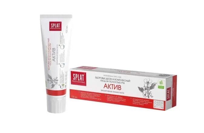 Hydrogenated Starch Hydrolysate, Hydrated Silica, Aqua, PEG-8, Sodium Coco-Sulfate, Cellulose Gum, Aroma, Sodium Monofluorophosphate, Bergenia Crassifolia Leaf Extract, Xanthan Gum, PVP, Sodium Methylparaben, Calcium Glycerophosphate, Scutellaria Baicalensis Root Extract, Acacia Seyal Gum, Sodium Saccharin, Spirulina Platensis Extract, Papain, Tocopheryl Acetate, Retinyl Palmitate, Helianthus Annuus Seed Oil, BHT, Limonene. Fluoride content – 0,1 % (1000 ppm).