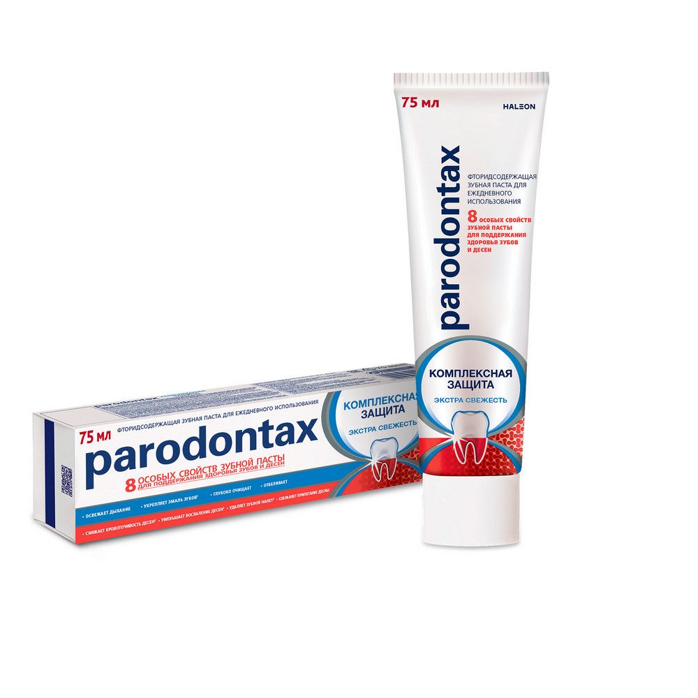 Зубная паста Parodontax Комплексная Защита обладает 8 особыми свойствами для поддержания здоровья десен и укрепления зубов: