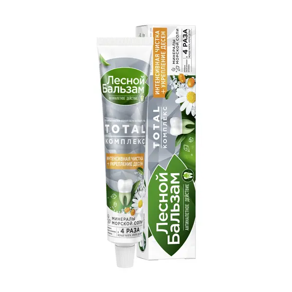 Профилактическая зубная паста Лесной бальзам Тройной эффект с экстрактом ромашки и маслом облепихи сочетает в себе сразу 3 действия, позволяя достичь максимальной защиты всей полости рта*: укрепляет десны, защищает от кариеса, сохраняет дыхание свежим в течение дня. Зубная паста имеет вкус целебных трав с освежающей сладкой мятой, степень освежения - интенсивная. Зубная паста имеет светло-зеленую консистенцию и бережно очищает эмаль за счет природного абразива - диоксида кремния (Silica). Диоксид кремния имеет округлую форму частиц и не царапает эмаль в процессе чистки зубов, при этом позволяет добиться равномерного удаления налета по всей поверхности зубов. Зубная паста изготовлена на отваре 5 трав (ромашка, тысячелистник, крапива, зверобой, чистотел). Отвар трав используется взамен обычной воды и получается в результате низкотемпературной экстракции (35%), что позволяет достичь максимально полного переноса ценных веществ из растений в отвар. Отвар трав в сочетании с ромашкой и маслом облепихи укрепляет десны, нормализует баланс микрофлоры в полости рта, улучшает питание десен. Зубная паста содержит фтор на уровне 1000 ppm, что соответствует среднему уровню содержания фторидов и подходит для ежедневной защиты эмали от деминерализации. Масло мяты в составе пасты эффективно блокирует рост патогенных бактерий в полости рта, в том числе на языке, и сохраняет дыхание свежим.